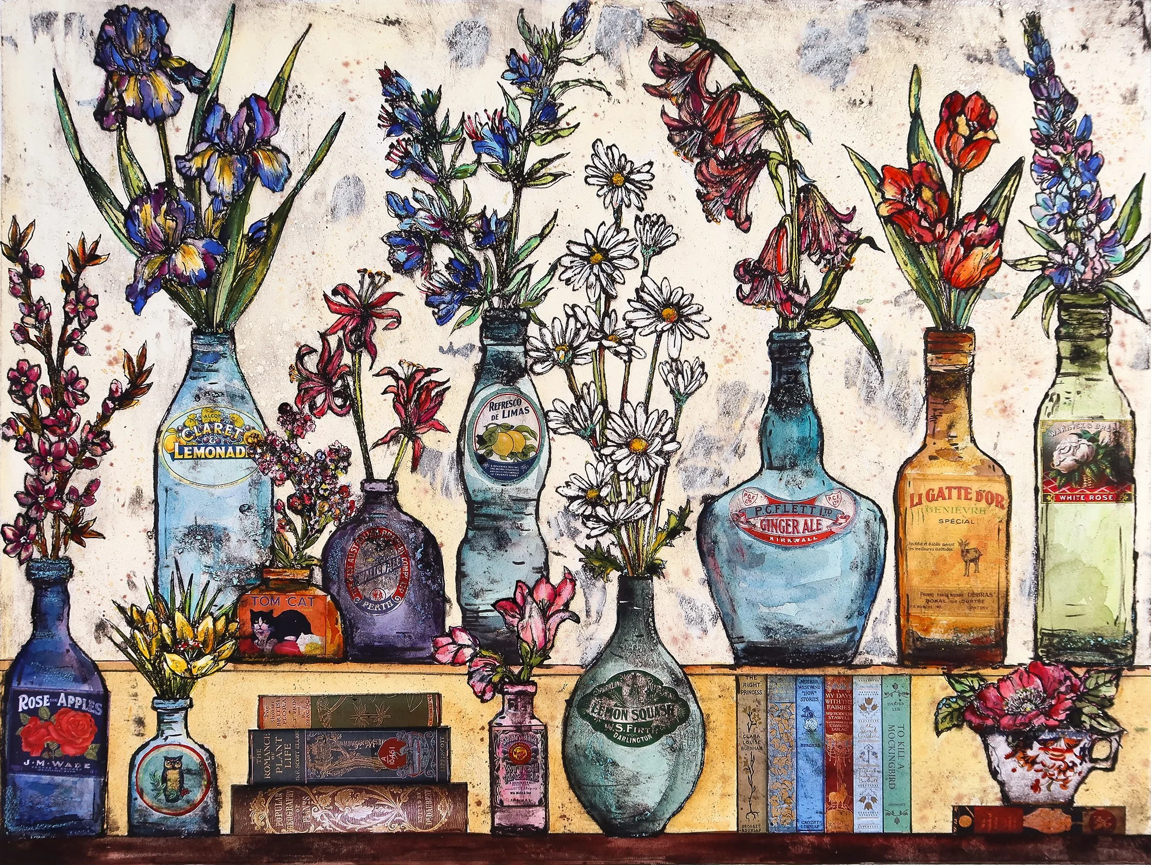 The Cut Garden 2: Contemporary colourful florals and abstract garden paintings in collage and mixed media.