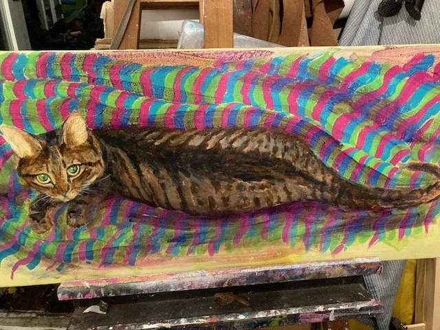 Anouschka paints an endless variety of natural things, landscape, flora and fauna, trees, seascapes, cats, fish, lizards etc plus silver plate metal work, birds, boats, fish and divas etc.